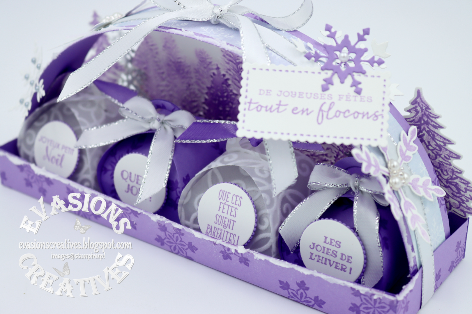A l’intérieur de ce support joliment décoré, 4 petites boites prendront place et seront offertes à nos proches lors de nos repas de fêtes, à l’occasion du réveillon de Noël ou encore le jour de Noël ( et oui, on y croit !!).